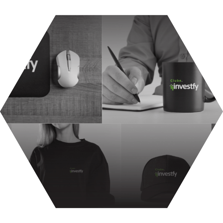 Demonstre seu engajamento com uma camisa Investfy e porta-copos exclusivos.