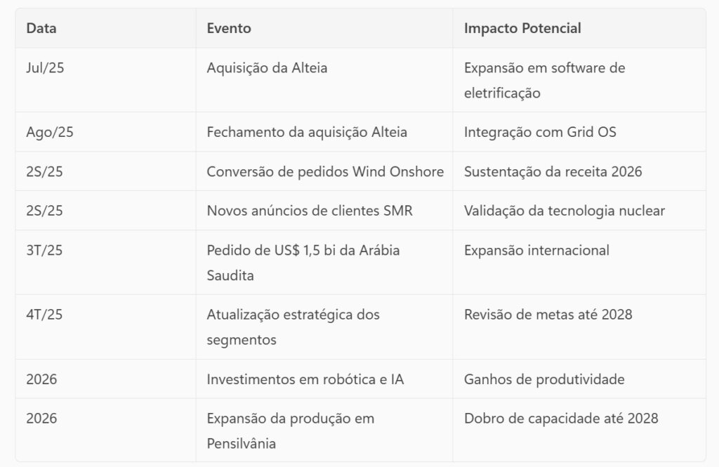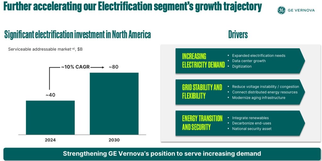 • Electrification (26% da receita): Equipamentos para infraestrutura elétrica (HVDC, switchgear, condensadores síncronos). Backlog de equipamentos passou de $6B em 2023 para $26B em 3T25.