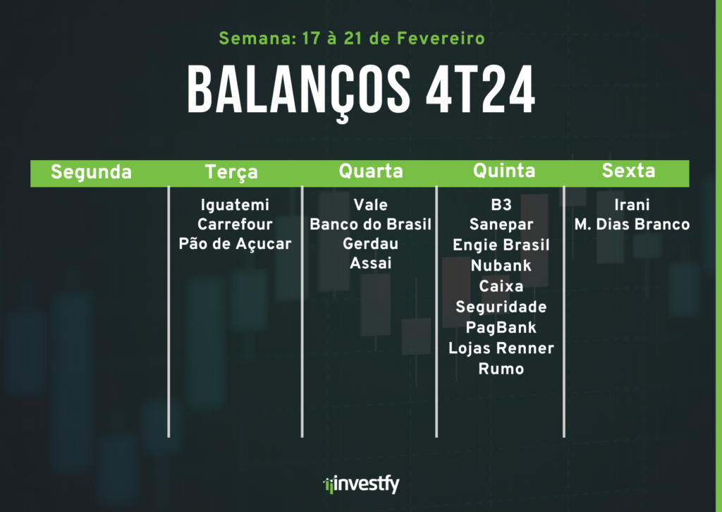 Enquanto isso, a temporada de balanços ganha força na B3, com resultados de pesos-pesados como Banco do Brasil, Vale e BB Seguridade.