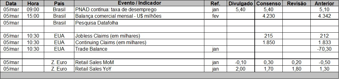 O índice da S&P caiu principalmente devido às fortes nevascas. A boa notícia é que o otimismo subiu em relação a janeiro, embora ainda permaneça abaixo da média de longo prazo devido às políticas de Trump. A projeção de PIB para o início do ano, segundo a S&P, está em 1,5%.
