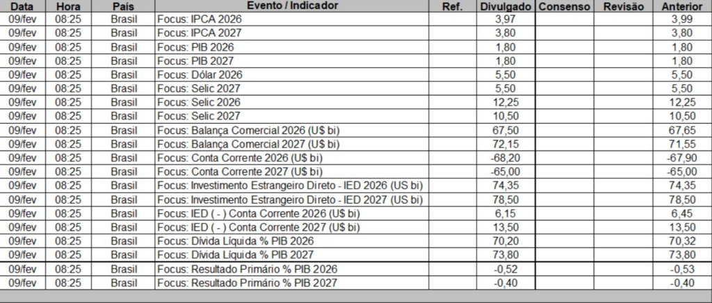 Quarta-feira: Payroll de janeiro (EUA); CPI e PPI (China)